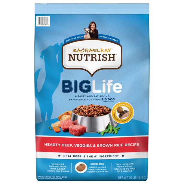 Rachael Ray Nutrish Big Life Dry Dog Food For Big Dogs Hearty Beef Veggies Brown Rice Recipe 40 Pound Bag Walmart Com